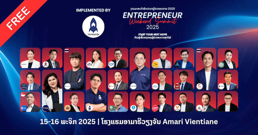 Sold Out Entrepreneur Weekend Summit 2025 - ງານມະຫະກຳສັບປະດາຜູ້ປະກອບການ 2025 ເສົາ, 15 ພະຈິກ 2025 | ອາທິດ, 16 ພະຈິກ 2025 ເສົາ, 08:30 - 16:00 | ອາທິດ, 08:30 - 16:00 ໂຮງແຮມອາມາຣີວຽງຈັນ - Amari Vientiane ຊື້ບັດເຂົ້າງານ
